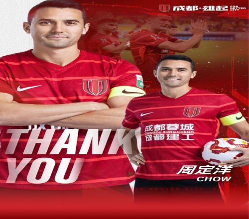 周定洋自2022赛季加盟成都蓉城,效力的4个赛季里,他总计出场125场比赛,其中中超111场、足协杯7场、亚冠7场,攻进21粒进球并送出13次助攻。上个赛季,周定洋代表成都蓉城出战38场,贡献7球5助攻,帮助球队再次夺得联赛季军,并历史性地闯入亚冠精英联赛正赛。